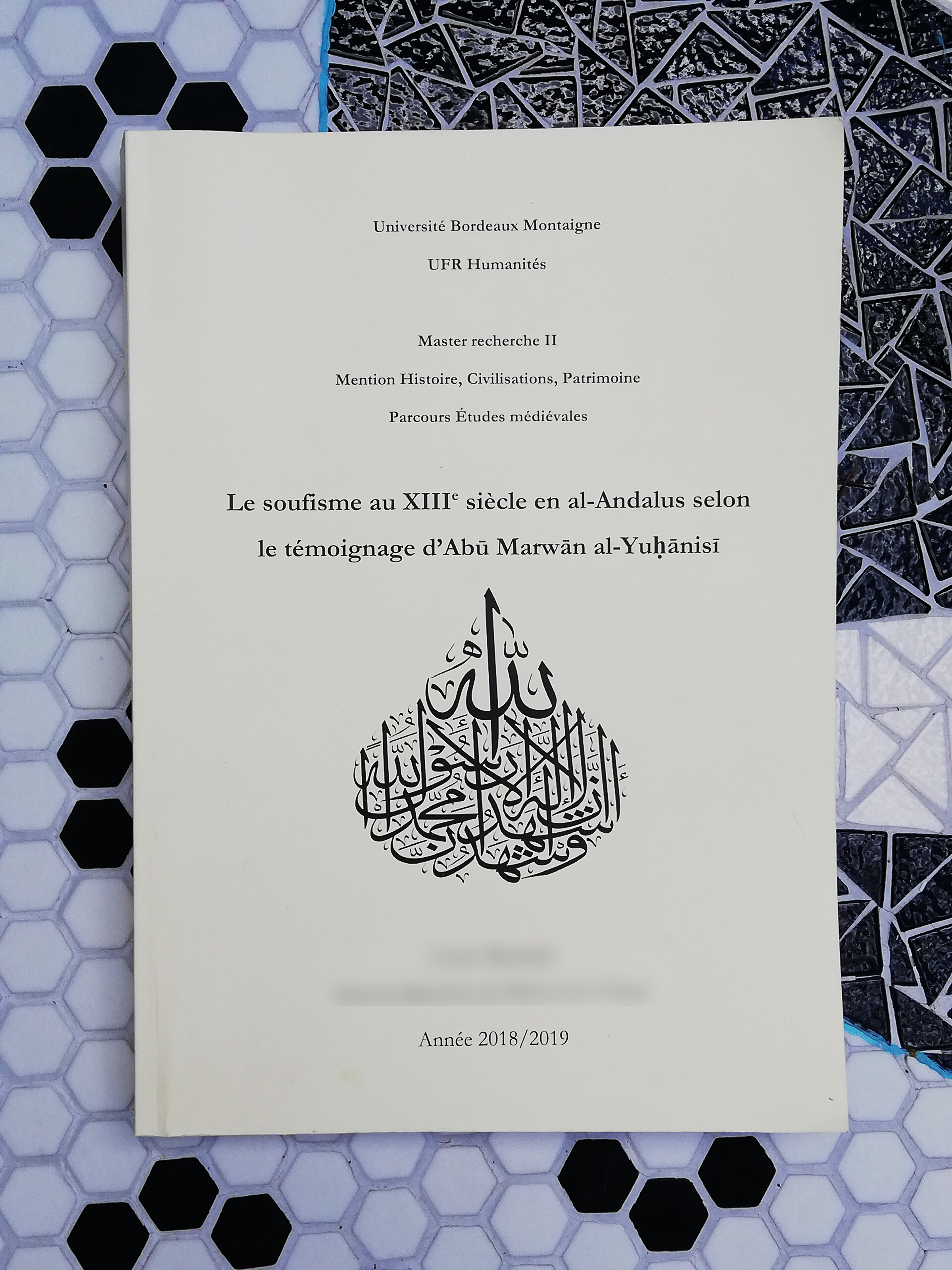 Mon mémoire de master sur le soufisme en al-Andalus (Espagne musulmane).