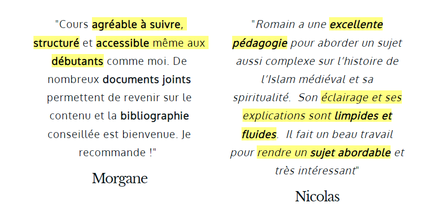 "Le contenu de Romain (Ave'Roes) est très qualitatif et pertinent pour ceux qui veulent s'intéresser à l'aspect historique de l'Islam. Le propos est clair, structuré et synthétique. Ça permet de gagner du temps. Romain est passionné par son sujet et transmet cet enthousiasme. Merci pour ton travail et bon courage pour la suite"